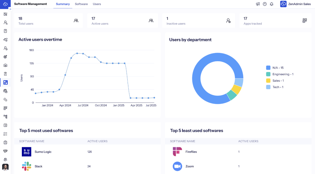 Its biggest strength lies in end-to-end automation. From procuring devices in 150+ countries to managing SaaS tools, automating HR/IT workflows, and securing assets through MDM (mobile device management) and IAM (identity access management), ZenAdmin gives businesses a truly centralized IT ecosystem.