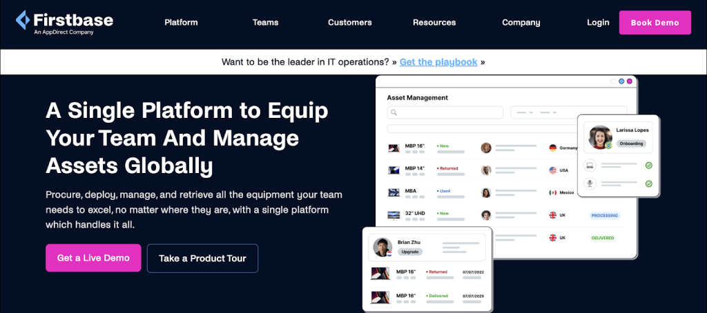 Firstbase is an IT equipment management platform for remote-first companies, covering procurement, deployment, monitoring, and retrieval in 150+ countries. Known for its secure offboarding and high device recovery rates, it helps distributed teams manage IT transitions smoothly.