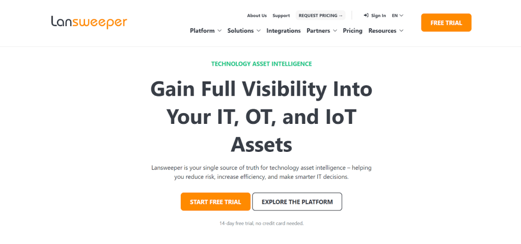 Lansweeper specializes in agentless network scanning for comprehensive IT discovery, inventory, and vulnerabilities. It generates detailed hardware/software reports for compliance and planning. Best for IT admins prioritizing scan depth over full ITSM.