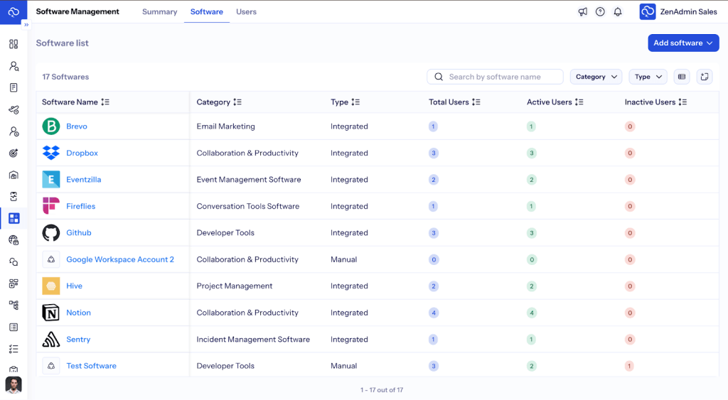 ZenAdmin helps with automatically discovering these unauthorized assets that slip through the cracks. Instead of playing detective to figure out what software and devices your team is actually using, you get complete visibility into your real technology footprint, not just what’s officially approved.